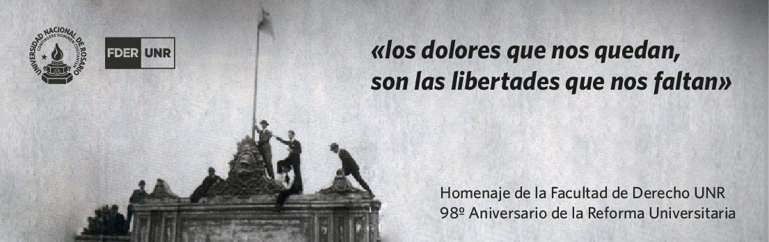 La Facultad de Derecho al cumplirse un nuevo aniversario de la Reforma Universitaria de 1918, rinde un profundo y respetuoso homenaje a esa histórica jornada iniciada por aquellos estudiantes universitarios que emprendieron un camino de lucha que marcaría el destino de la Educación Superior en nuestro país, en Latinoamérica y en todo el mundo, adhiriendo de esta forma a los actos y homenajes programados en las distintas Facultades de nuestra Universidad.