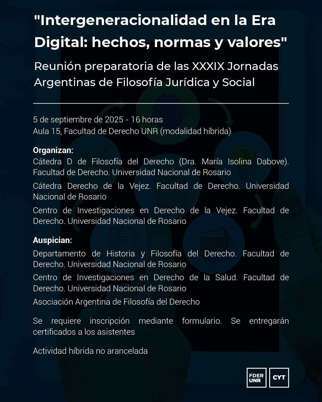 Reunión preparatoria de las 39 Jornadas Argentinas de Filosofía Jurídica y Social, 5 de septiembre de 2025 a las 16 horas aula 15 de la Facultad de Derecho, se requiere inscripción mediante formulario