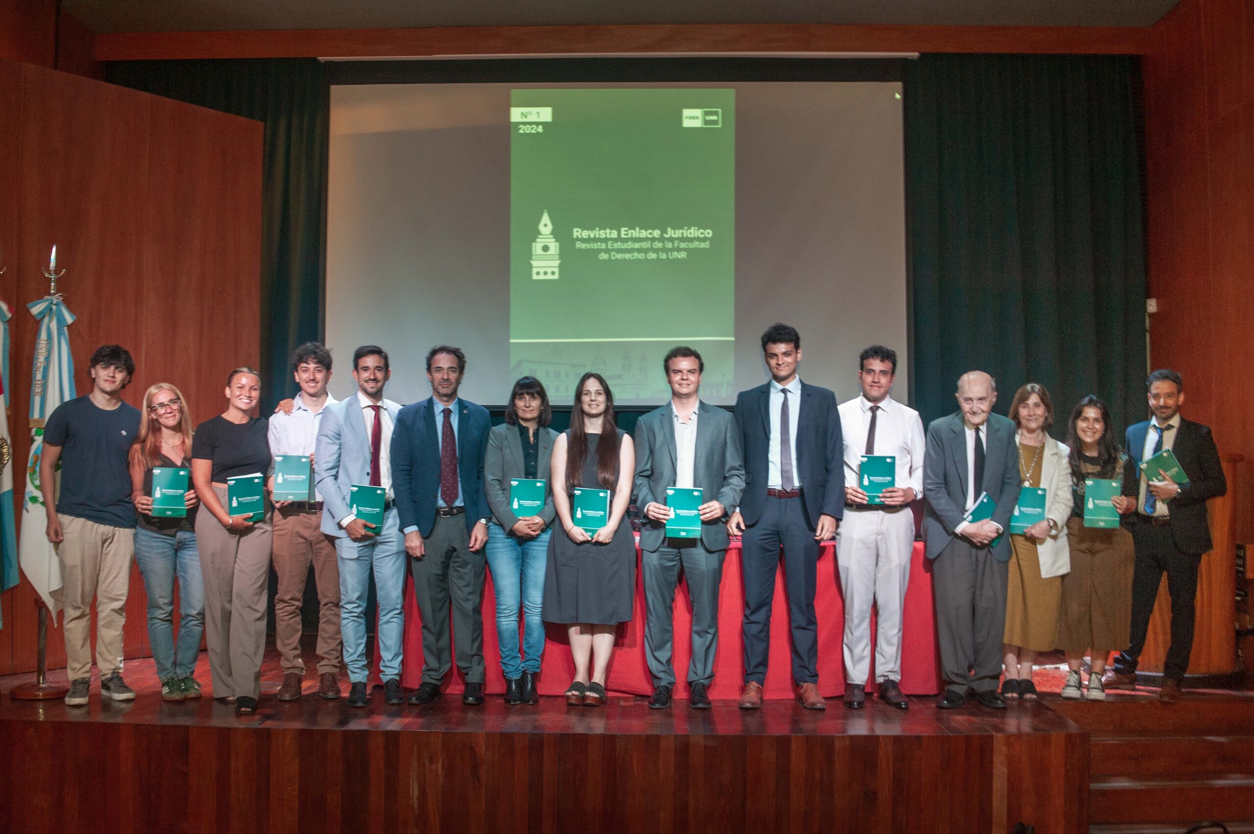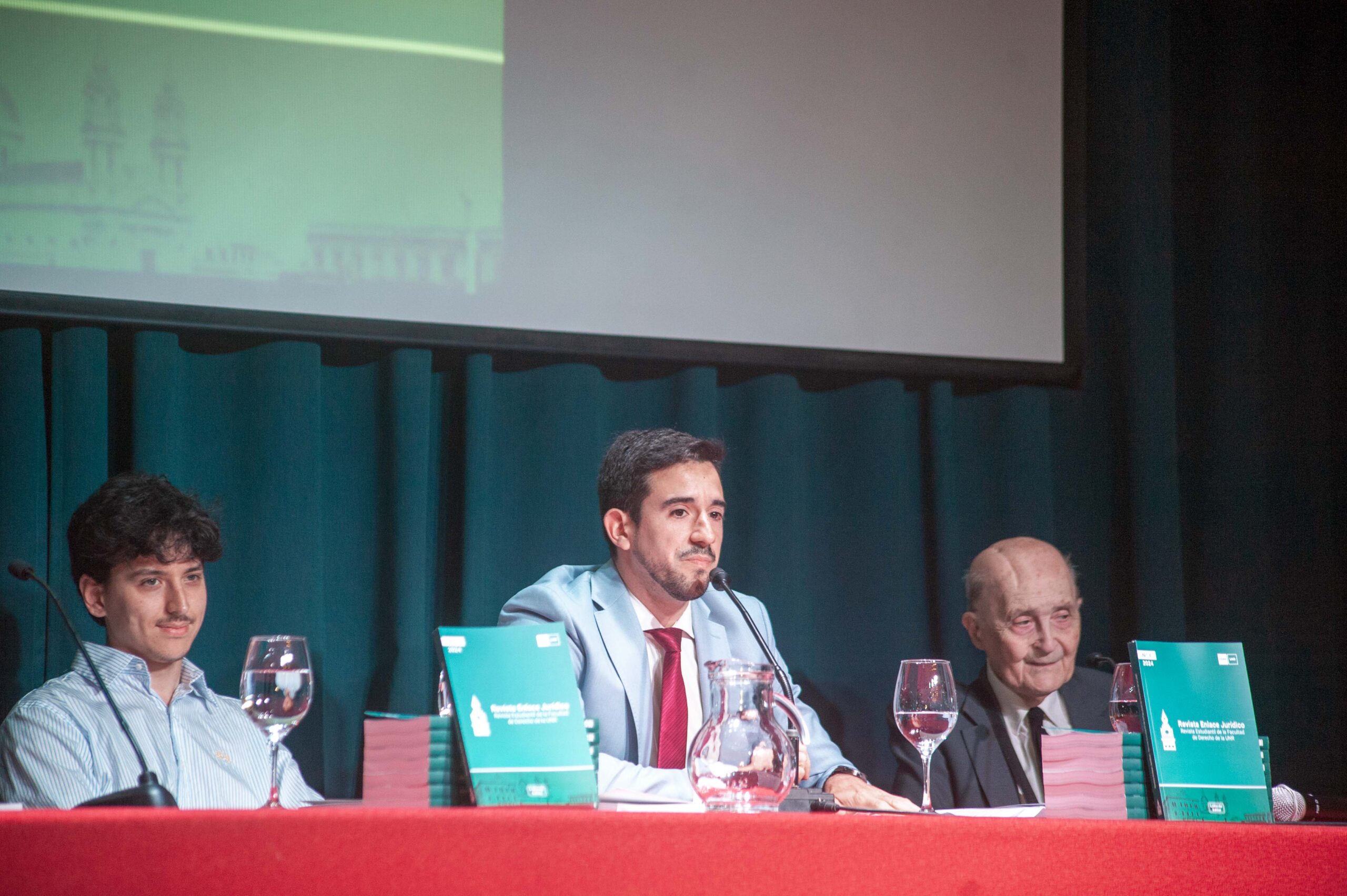 En el marco de las Jornadas se presentó el primer número de Enlace Jurídico, una publicación académica dirigida por estudiantes de Abogacía. El encuentro contó en su apertura con las palabras del Decano de nuestra Casa Dr. Hernán Botta y con la secretaria de Ciencia y Técnica Dra. Paula Navarro, quienes impulsaron la publicación de la revista; y con la participación del Dr. Miguel Ángel Ciuro Caldani entre las exposiciones, quien promovió la divulgación del conocimiento jurídico. De la presentación participaron además el director e integrantes de la Revista: Lucas Navarro, Alessandro De Piazza y Valentín Giuliani, quienes compartieron experiencias y desafíos que acompañaron la gestación de esta nueva propuesta editorial que busca fortalecer los espacios de producción, reflexión y difusión del conocimiento jurídico desde una perspectiva plural y abierta. Este primer número reúne trabajos de estudiantes, graduados y docentes de la Facultad, junto con entrevistas a los reconocidos juristas Eugenio Raúl Zaffaroni y Aída Kemelmajer de Carlucci, quienes aportan una mirada enriquecedora sobre los debates actuales del Derecho. Enlace Jurídico ya se encuentra disponible en enlacejuridico.unr.edu.ar