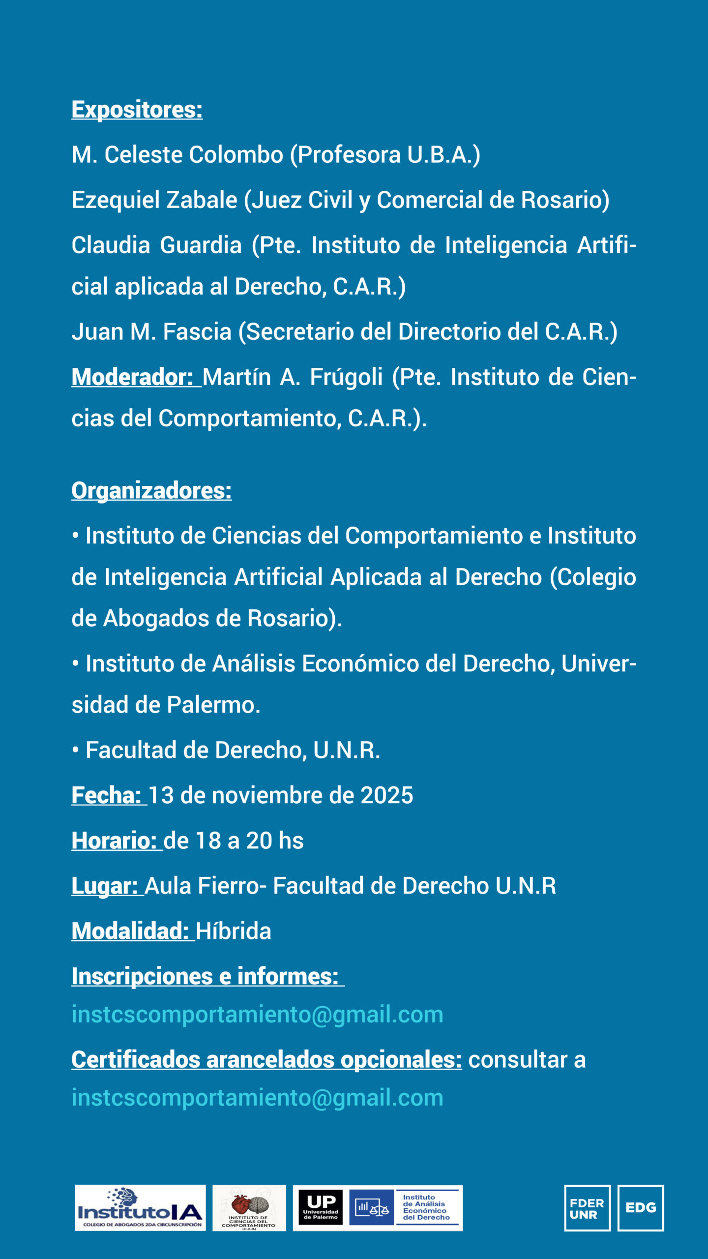 - Instituto de Ciencias del Comportamiento e Instituto de Inteligencia Artificial Aplicada al Derecho (Colegio de Abogados de Rosario).