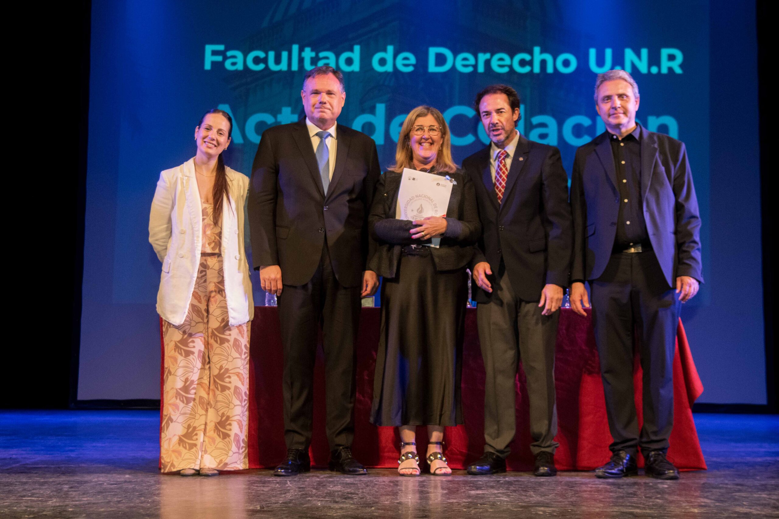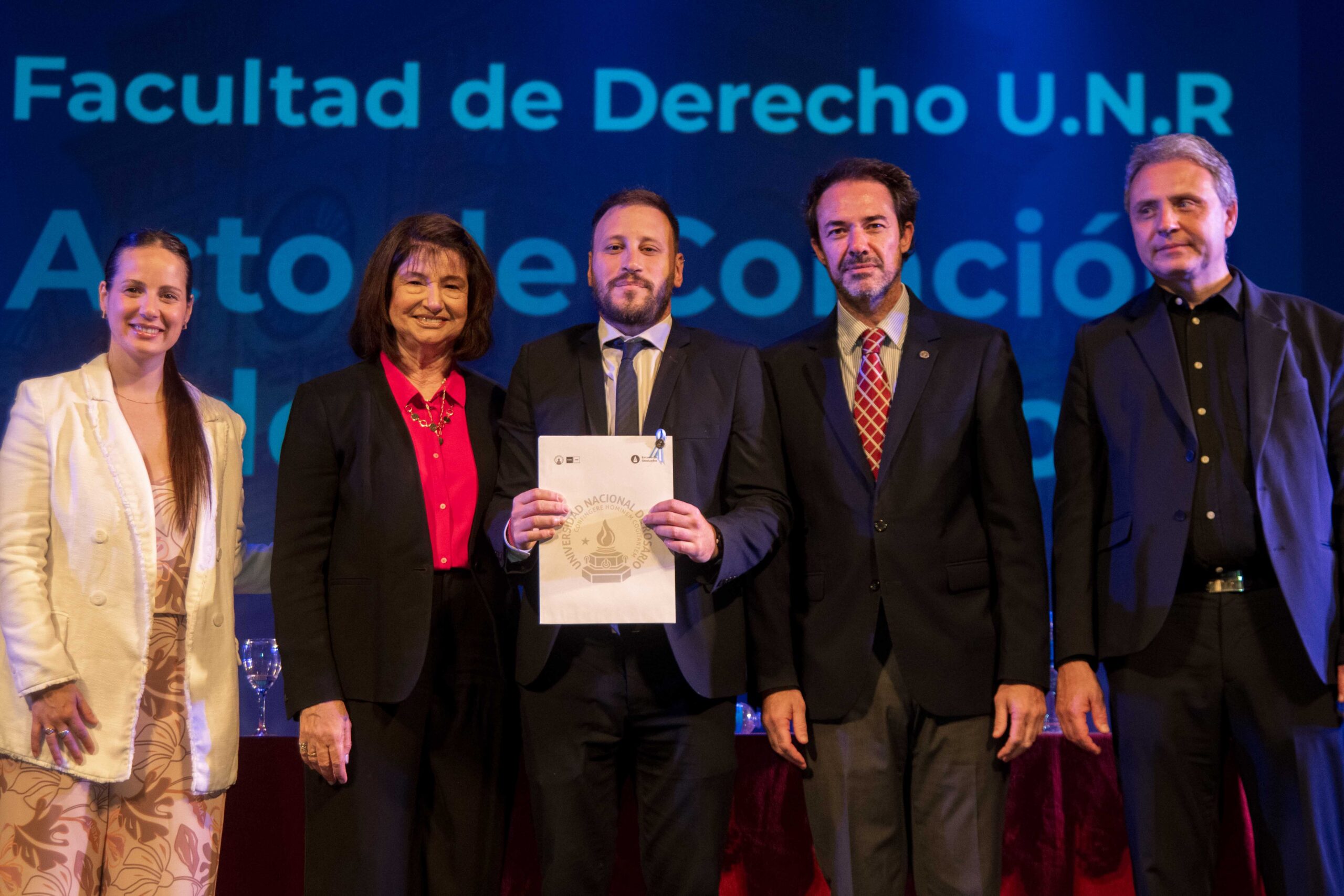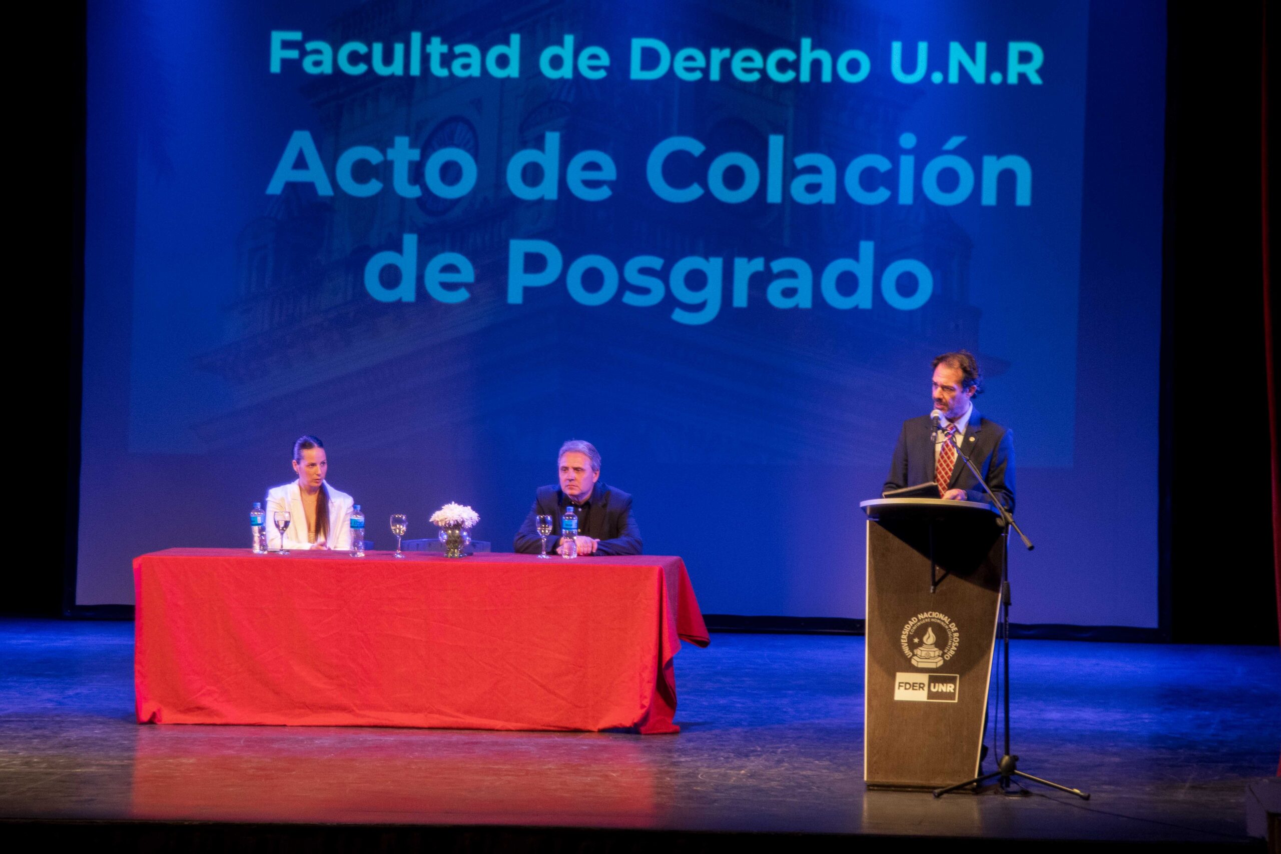 Participaron de la ceremonia el Sr. Decano de nuestra Facultad de Derecho, Dr. Hernán Botta; la Vicedecana, Dra. María Emilia Barberis; el Secretario Académico de la Escuela de Graduados, Dr. Germán Gerbaudo; directores, coordinadores, docentes, estudiantes y familiares de los nuevos y las nuevas graduadas. En el acto se celebró el esfuerzo de toda la comunidad académica, la vocación de los/as egresados/as de seguir aprendiendo y perfeccionándose como profesionales del derecho; y la calidad académica de las carreras de posgrado, dirigidas por juristas, magistrados y docentes de alto nivel, reconocimiento al esfuerzo y orgullo institucional por mantener la calidad académica y la vocación de servicio en el ámbito jurídico.