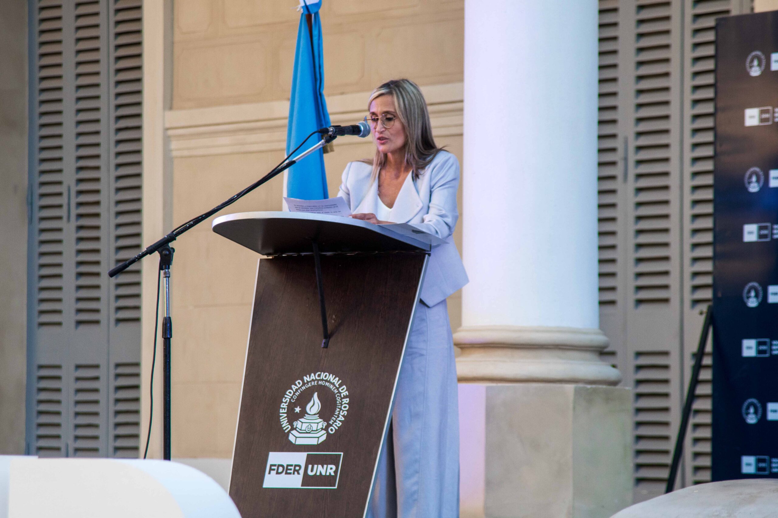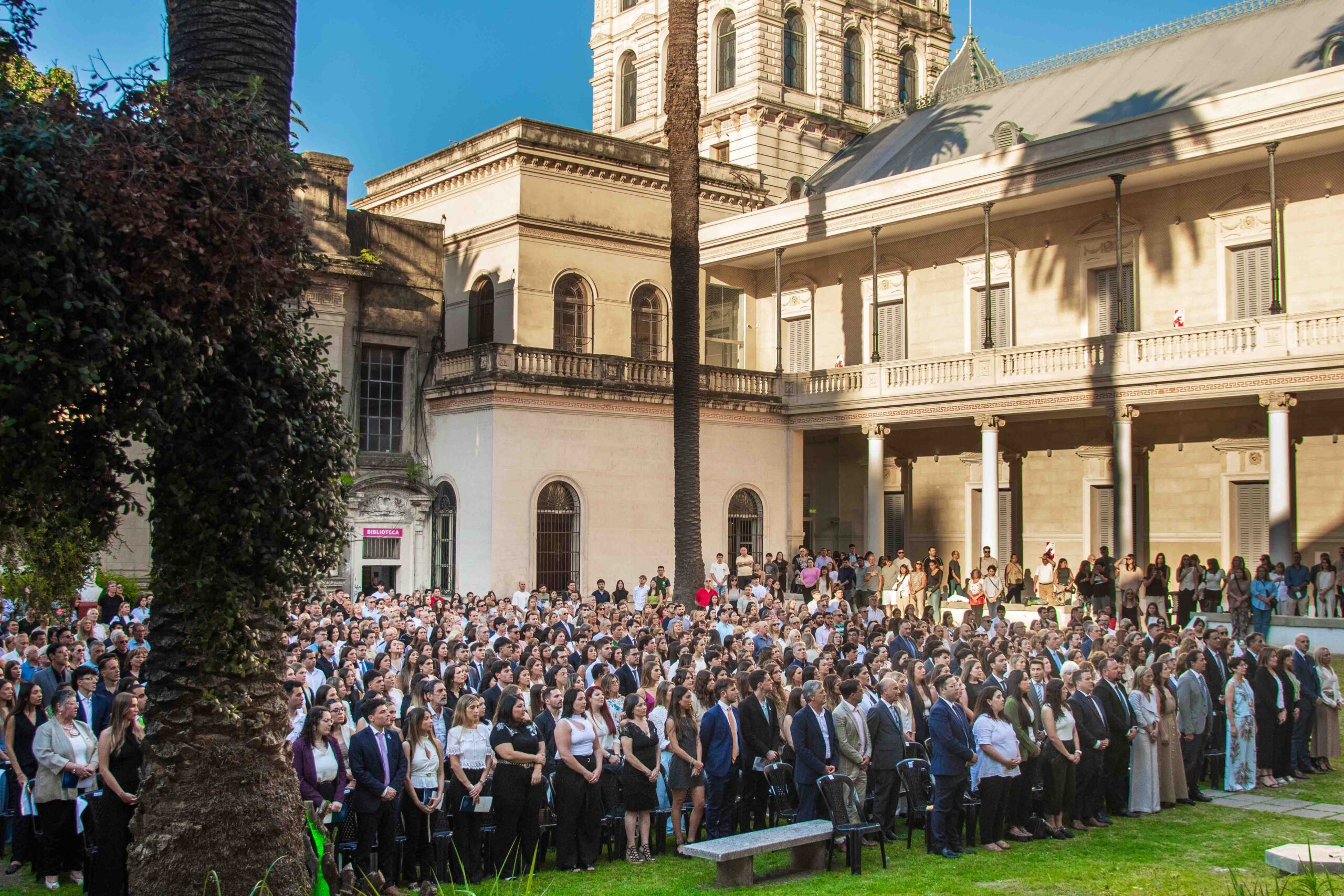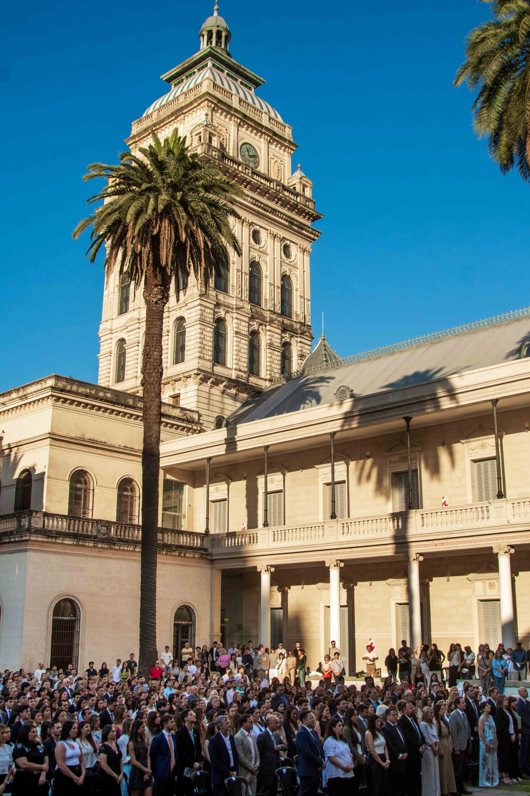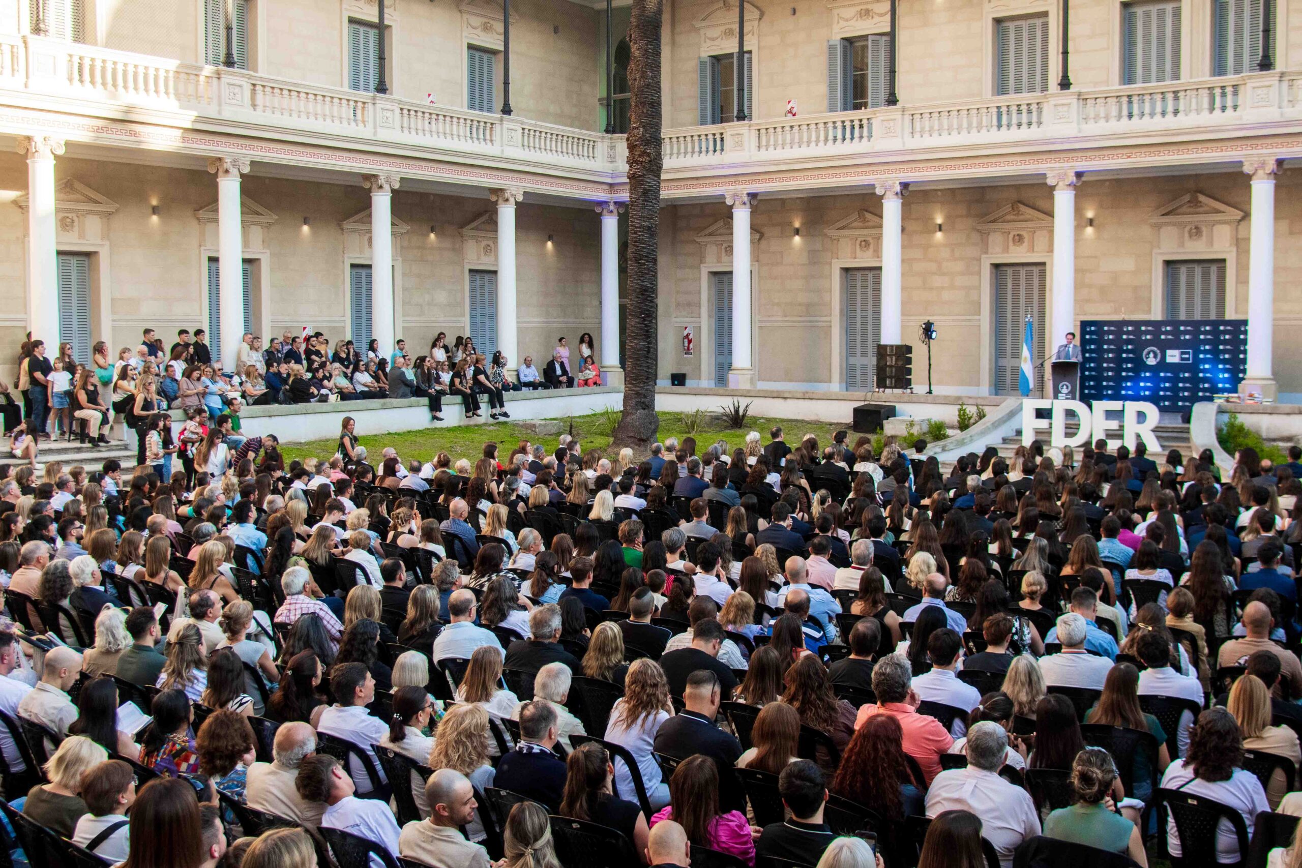 En una emotiva ceremonia en el patio recientemente inaugurado y restaurado de nuestra Casa de Estudios, y con amplia participación de autoridades, docentes, nodocentes, estudiantes, la FDER reconoce de esta manera el esfuerzo y las historias de perseverancia de los graduados y agradece el acompañamiento de sus familias, amistades y docentes, destacando el valor de haber transitado la universidad pública y los principios que esta encarna —pluralismo, ciudadanía y compromiso social—, y alentando a seguir formándose, ser valientes y solidarios, a sostener sus convicciones y a mantener la esperanza en la construcción de un país más justo.